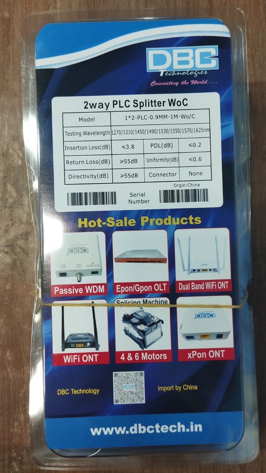 DBC PLC Splitter 1×2 Steel Tube No Connector 0.9mm Cable Diameter Optic Plc Splitter 1260-1610nm